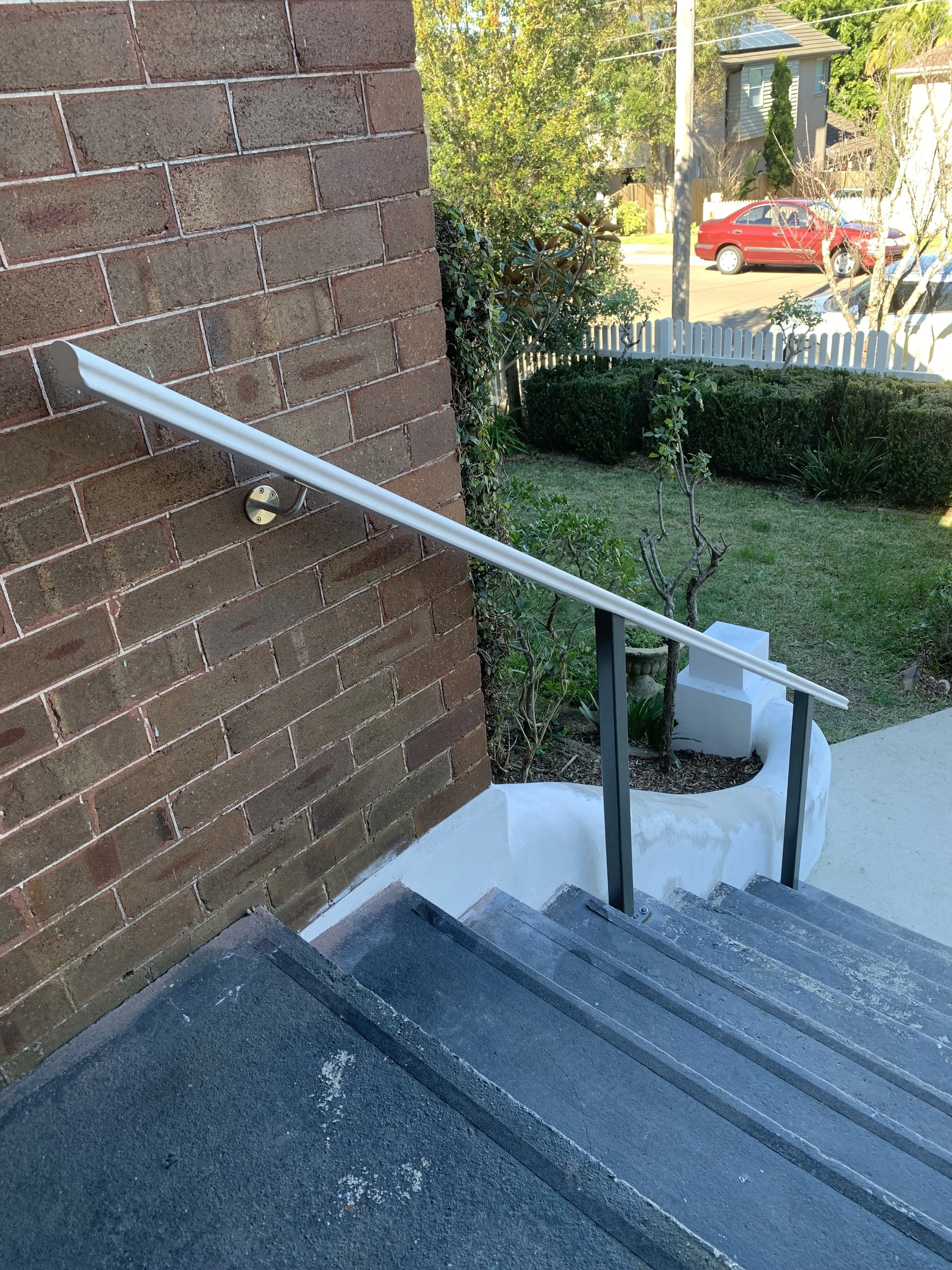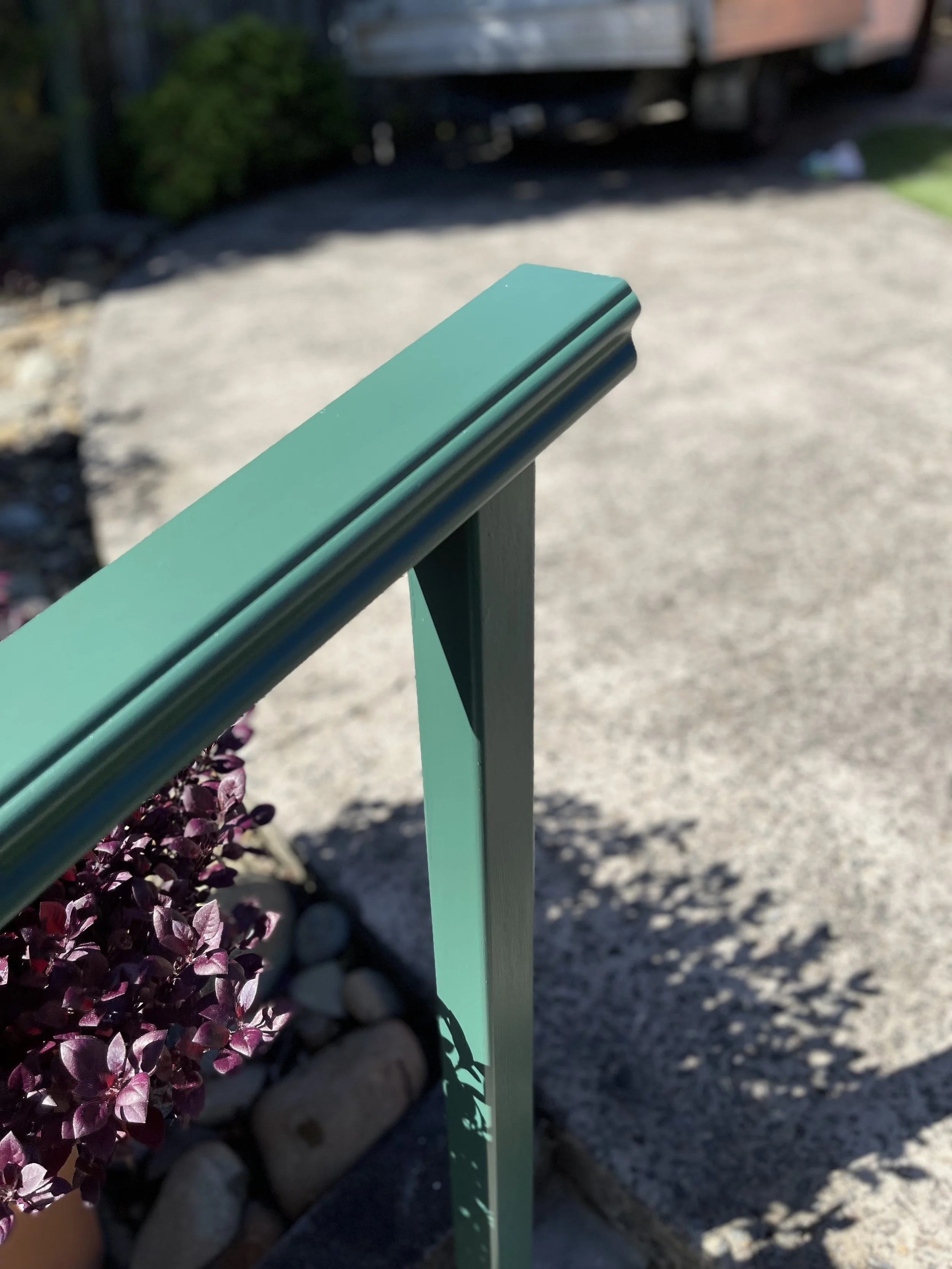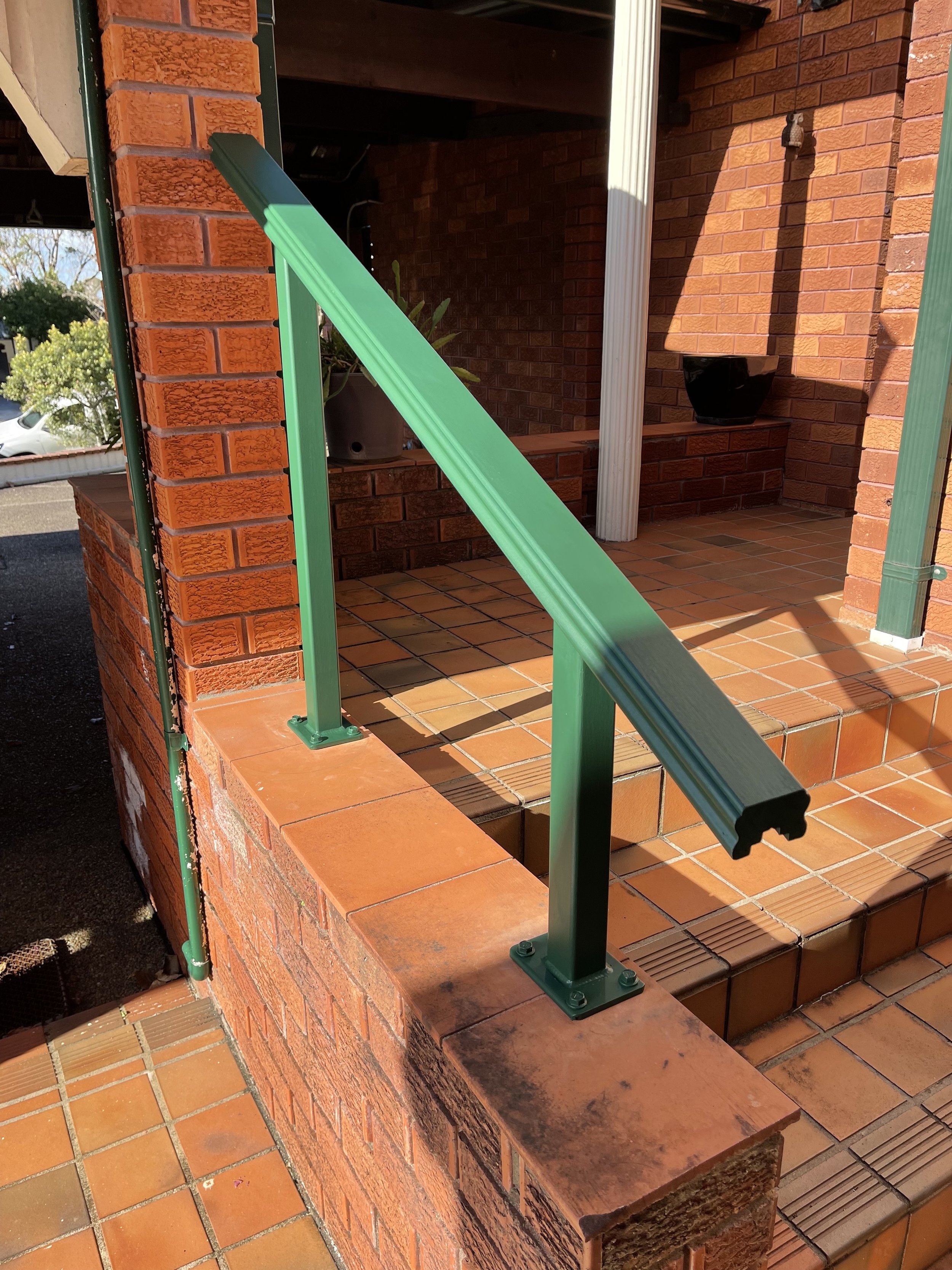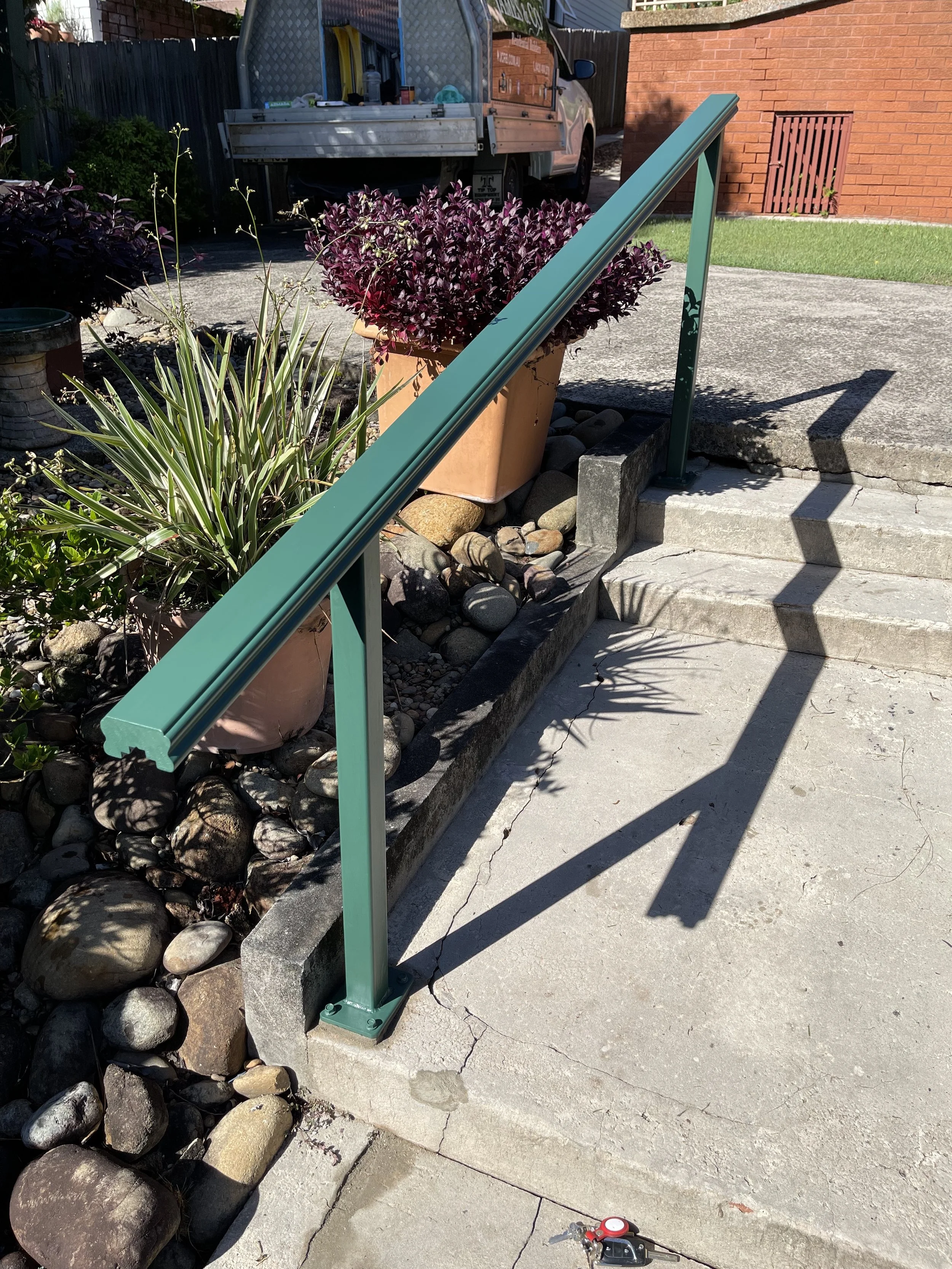OUR HAND RAILS & POSTS ARE COATED IN 2 COATS OF DULUX WEATHERSHIELD & COLOUR MATCHED TO THE HOME.